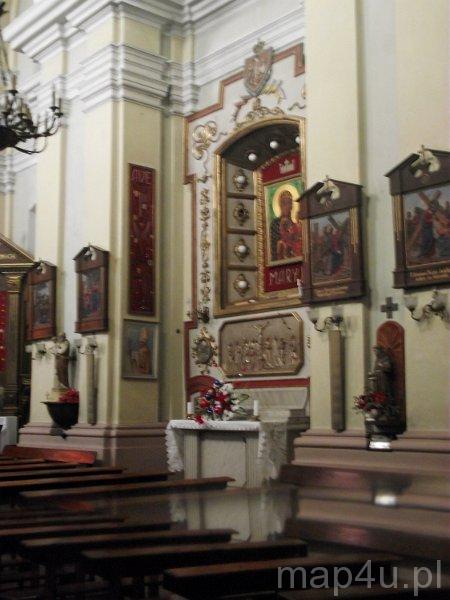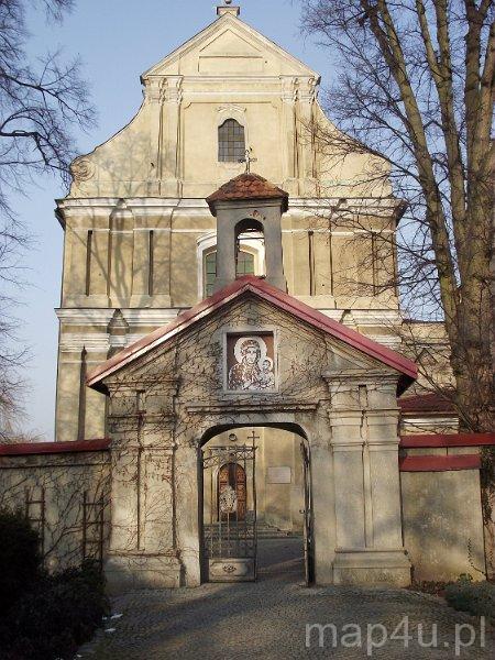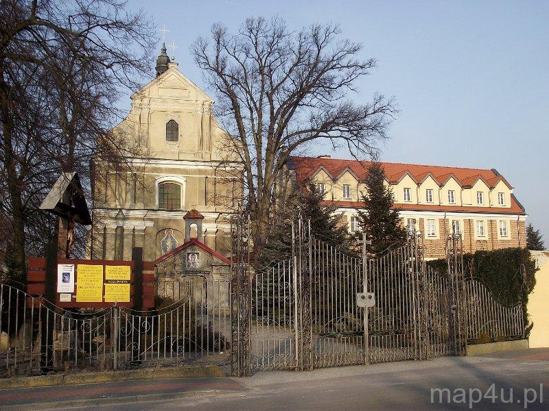 - Na cmentarzu tzw. Bratnia Mogiła, kryjąca prochy powstańców poległych w okolicznych bitwach w latach 1863‒1864, przeniesione tu z krypt klasztornych. Na grobie słowa papieża Jana Pawła II: "Wolność jest droższa niż życie". Na cmentarzu przykościelnym przetrwał nagrobek Stefana Mączyńskiego, byłego oficera 2. Pułku Strzelców Konnych, zmarłego w 1854 r.
