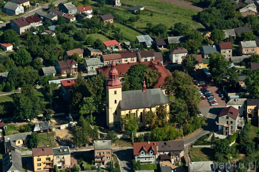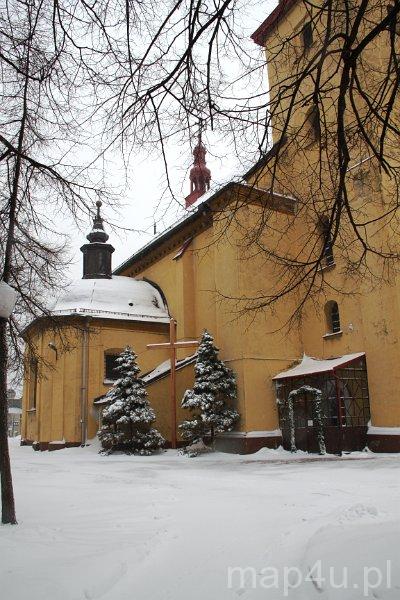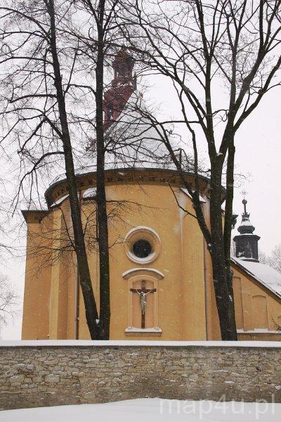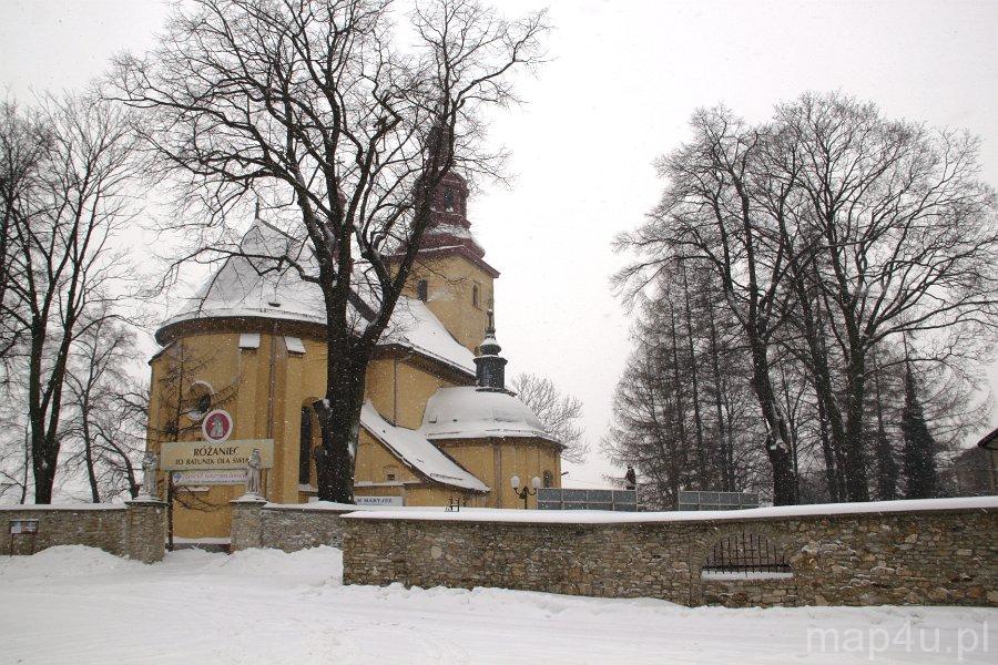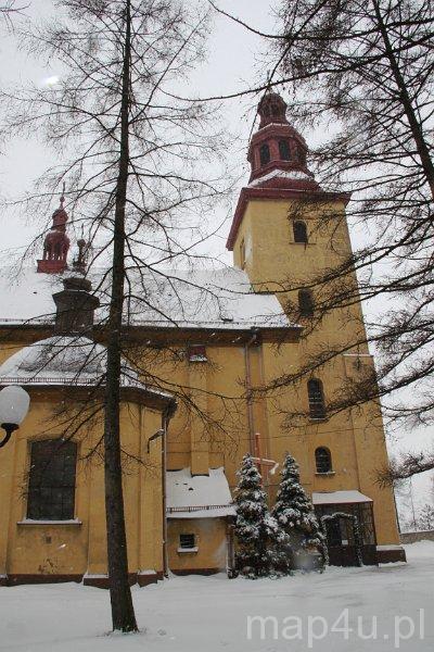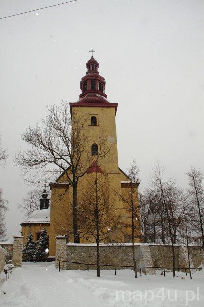Świątynia została wybudowana w II poł. XVII w. (prawdopodobnie budowa trwała w latach 1644–1653), ale swój obecny kształt otrzymała w I poł. XVIII w. w wyniku dobudowania do niej kaplicy Matki Boskiej Różańcowej.Materiał budowlany