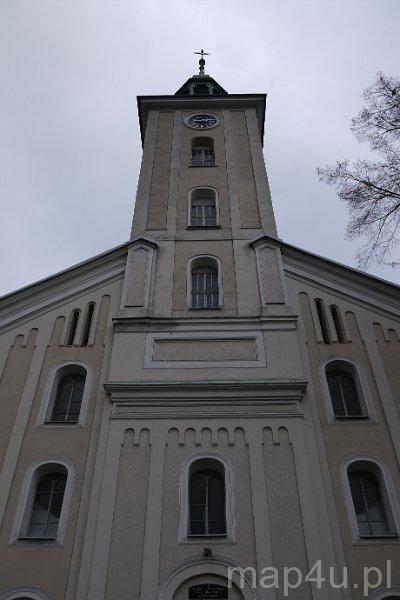 Świątynię wzniesiono w latach 1818–1827 i następnie przebudowano w 1848 r. i 1867 r. Kościół ucierpiał znacznie podczas II wojny światowej, został bowiem czterokrotnie trafiony przez pociski artyleryjskie i ostrzelany przez samolot. Uszkodzono wówczas budynki gospodarcze oraz splądrowano i zniszczono plebanię. W latach 50. XX w. świątynię wyremontowano, wykonując m.in. nowe pokrycie dachu i wieży, tynkowanie oraz instalację ogrzewania gazowego. W 1995 r. odmalowano kościół wewnątrz, a w 1996 r. przeprowadzono remont organów.