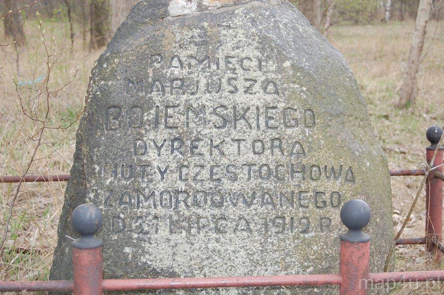 Kamień i krzyż Bojemskiego, zastrzelonego przez grupę „Rewolucjonistów – Mścicieli”, został ustawiony 21 lipca 1912 roku obok cegielni „Michalina” B. Helmana. Kamień wraz z osadzonym na nim krzyżem, postawiono z inicjatywy matki Bojemskiego w miejscu, gdzie tragicznie zginął Mariusz Bojemski. Głaz dostarczył miejscowy zakład kamieniarski „Kruszyński i Proszowski”, a krzyż wykonano w warsztatach mechanicznych huty.