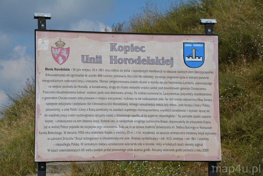 Kopiec został usypany w 1861 r. w 448 rocznicę Unii Horodelskiej zawartej pomiędzy Polską a Litwą w 1413 r. Na szczycie kopca stoi krzyż dębowy z wizerunkiem orła białego. Kopiec wznosi się na 11 m.